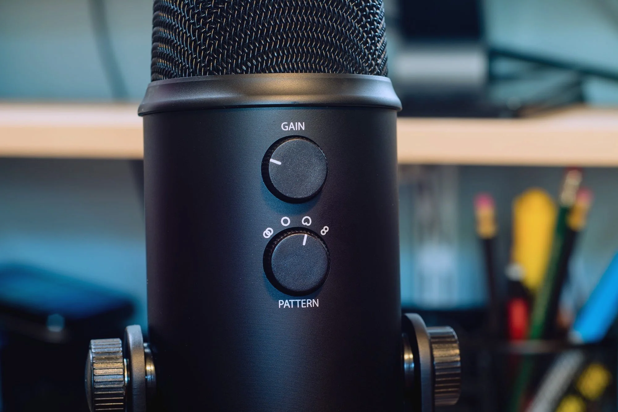 Don’t speak into the “top” of the microphone. The Blue Yeti is a side-address microphone, meaning you speak into the side of it.