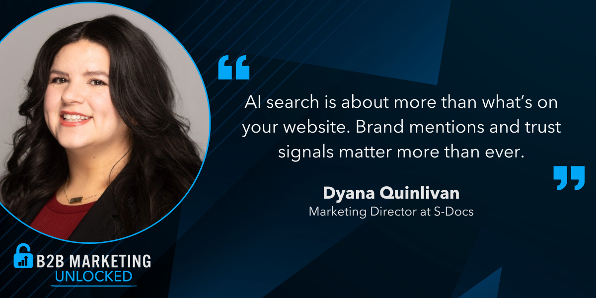 In this episode of B2B Marketing Unlocked, Dyana joins host Jony Mansilla to break down how modern B2B SaaS teams are driving pipeline in a changing landscape. She shares how S-Docs approaches compliance driven messaging for IT leaders, how gated research reports fuel demand without forcing sales conversations too early, and why marketplaces and SEO continue to outperform paid channels at scale. Dyana also explains how her team uses AI tools responsibly, what is working with event marketing, and how B2B marketers should think about visibility as buyers shift toward AI search.